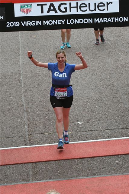 Five hours plus is a really long time to be out running on the streets of London. The second half of the race becomes more and more a mental battle, with an enormous amount of resilience needed to keep pushing on when everything starts to hurt. It was in these more challenging moments that I massively appreciated the support from the crowd, both the general public and those who had come to cheer me on. It really helped me break the later miles down mentally into more manageable chunks, knowing that I would see my husband Jon again at mile 21, and the parkrun crew at mile 22. The noise and support from the general public was also incredible along the whole route! I have never seen so many people standing offering out food, although I never want to see another jelly baby in my life! Fresh orange slices at mile 20 tasted heavenly, and the ham and cheese sandwich I picked up later on gave me a much needed boost! I had my name written on my top, and hearing the shouts of ‘You can do this Gail!’ along mile 25 of the embankment was almost overwhelming.