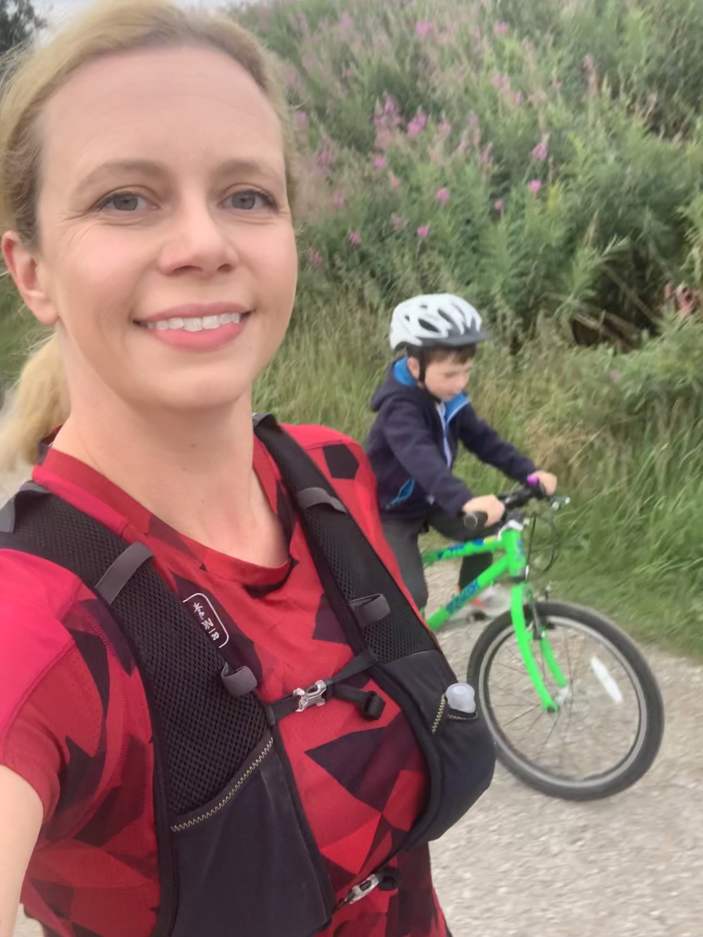 With two small children, we never intended to tackle the whole 17 mile out-and-back route in one visit and so stopped for a food break and to turn around at the site of a former platform, now overgrown with wildflowers. I was really pleased with how well the children’s natural cycling speed matched up with my running. I imagine there is something of a window of opportunity, child and running skills dependent, before you can no longer keep up! In fact, it turned out to be a very enjoyable training session for me, kind of a ‘surprise interval’ session where the children would either ride steadily, stop dead to look at something, or shoot off as fast as they could with very little warning. All in, we covered just under 7 miles, and all definitely felt we had earned our cakes back at the cafe. The me of a few years ago would never have dreamt of being able to join in with something like this, so I’m really glad to be able to share these lovely active little adventures with my kids.