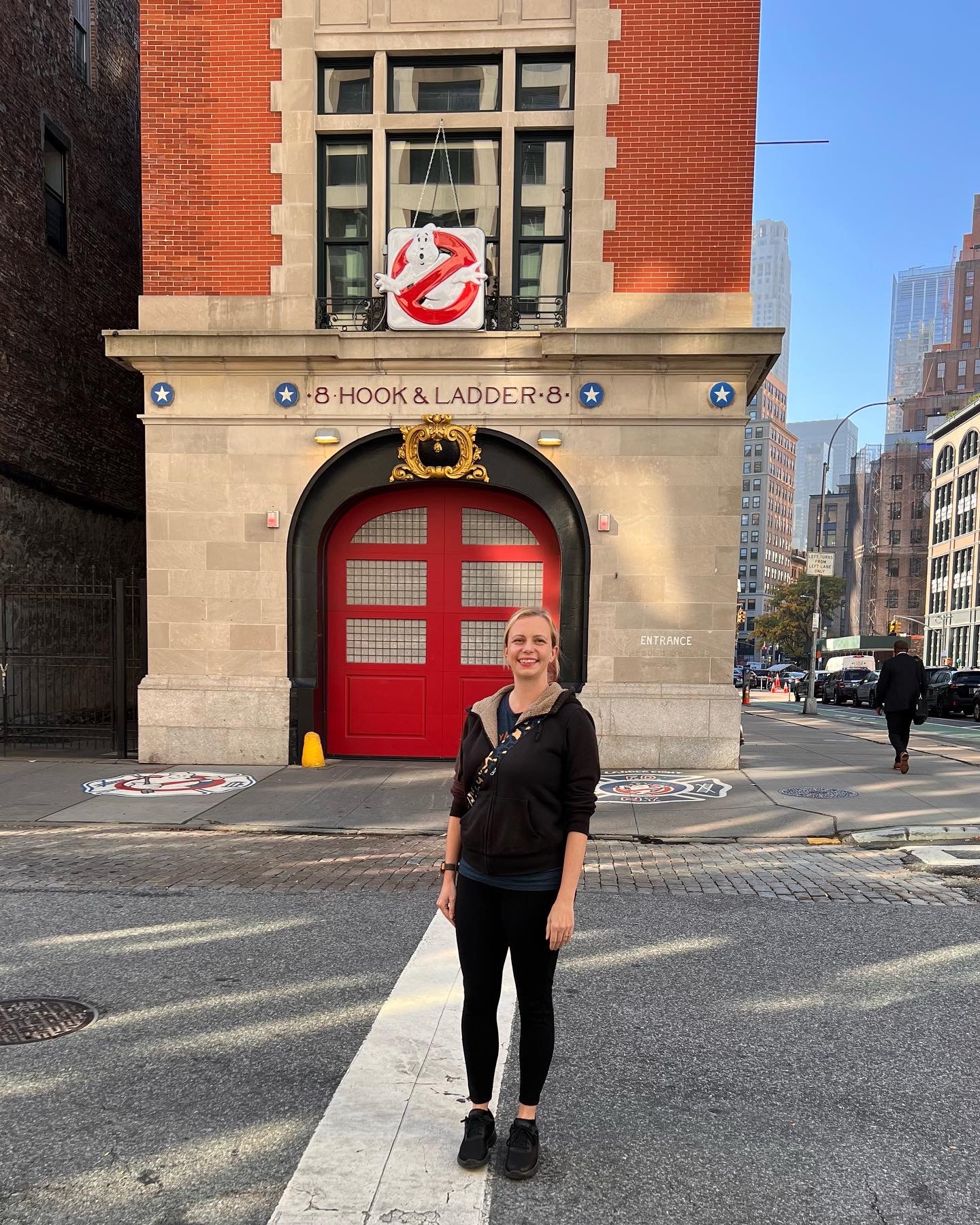 As it was my first visit to the city, I flew in on the Wednesday before the race to give myself a good few days for sightseeing. For two days – I packed in as much as I could, the marathon expo, Central Park, epic views from the top of the Rockefellar Center and two incredible guided food tasting tours of Greenwich Village and Chinatown. I have to admit, racking up a huge number of steps per day is not amazing pre-marathon prep, but I couldn’t miss my one opportunity to see everything! It was really noticeable how much of the city was instantly recognizable from movies and TV shows. One morning, I turned a corner to find myself right outside the Ghostbusters firestation! (I loved those movies!) That same afternoon, my stroll back from Greenwich village took me right past the Friends apartment, and up to Carrie Bradshaw’s front steps – where they were actually filming a new episode of the Sex and The City spin-off!