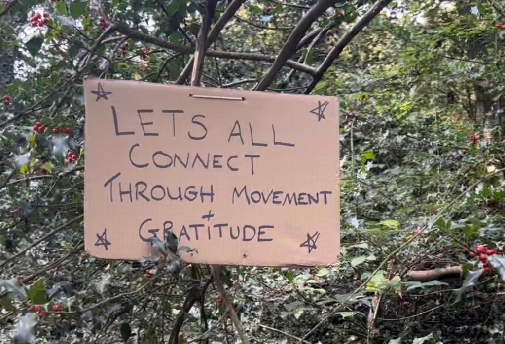As we ran ever southward, the pack began to thin out. I followed the orange trail markers pinned to trees, with one eye on the map on my watch too. The 11km aid station provided some very welcome snacks and a quick break before continuing. I stopped to chat to dog walkers who asked “Where are you all going? But that’s miles away!”. After skirting Highams Park lake, I was in familiar territory, running past the dens and rope swings popular with my children, before emerging out into the blazing sunshine of the open covered reservoir known as The Circle. Here I met Mark of RunGrateful, and continued on to the next section, the gratitude mile. Running alone now, this was a moment of complete tranquility I’ve never experienced before in the middle of a race. With just the sounds of the forest around me, I watched out for the #Rungrateful signs and reflected on how fortunate I was that my body and health allows me to have these wonderful adventures.