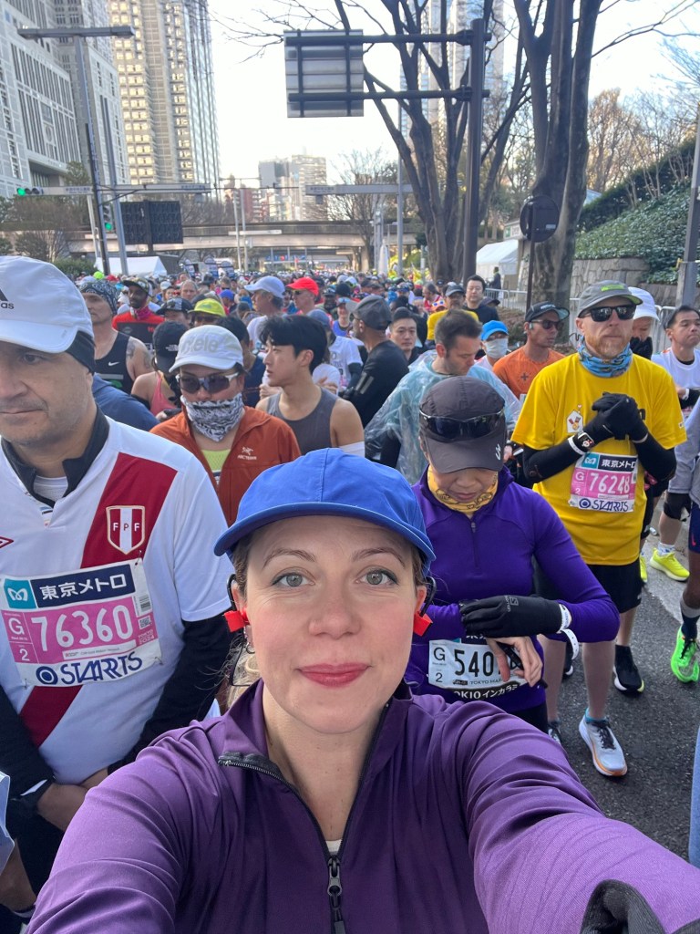 Before too long race day had arrived, and I set off from the apartment down to the starting area in Shinjuku. There had been plenty of pre-race worries, both for me and the other participants I had chatted to online. We had heard a lot about the rather strict sounding cut-offs, where the course would be shut by a ‘golden rope’ at predefined parts of the day, and also heard tales of incredibly long portaloo queues, not being allowed to carry any water, and instant disqualifications for dropping litter. So it was with a little trepidation that I made my way to my starting corral, on that freezing cold morning, wrapped up in disposable warm layers.